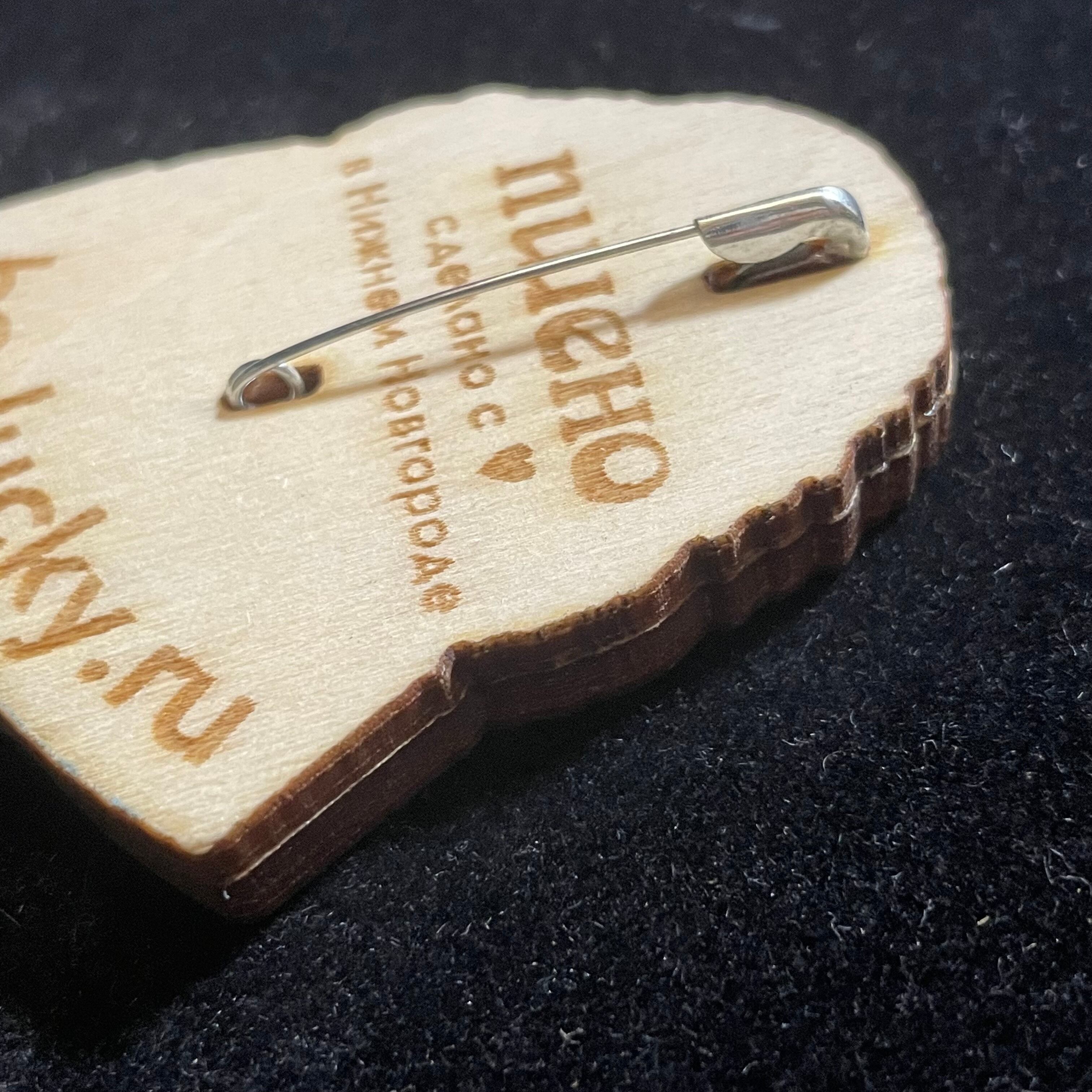 元素周期表でおなじみの偉大な化学者、メンデレーエフをモチーフにした木製ブローチ。