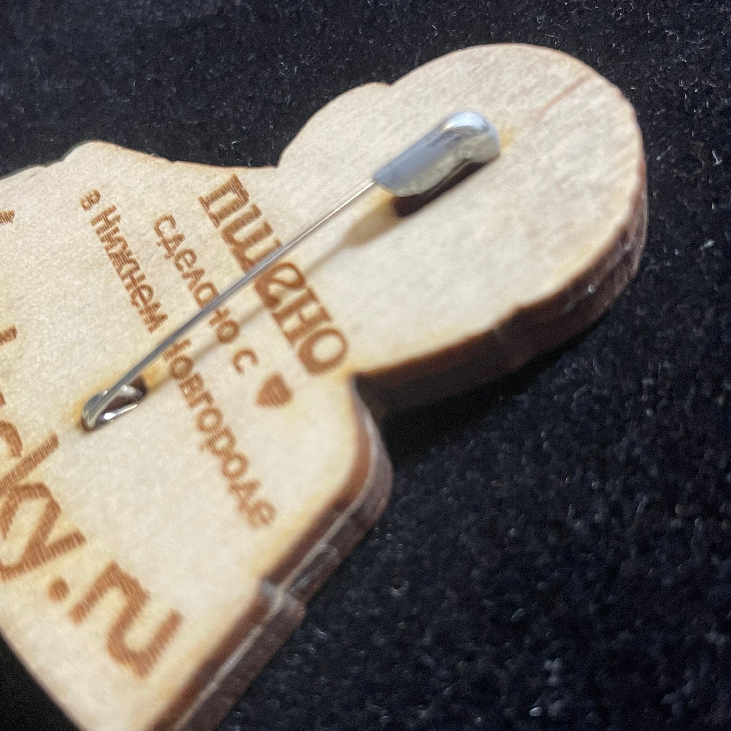 ロシア未来派の詩人、マヤコフスキーをモチーフにした木製ブローチ。